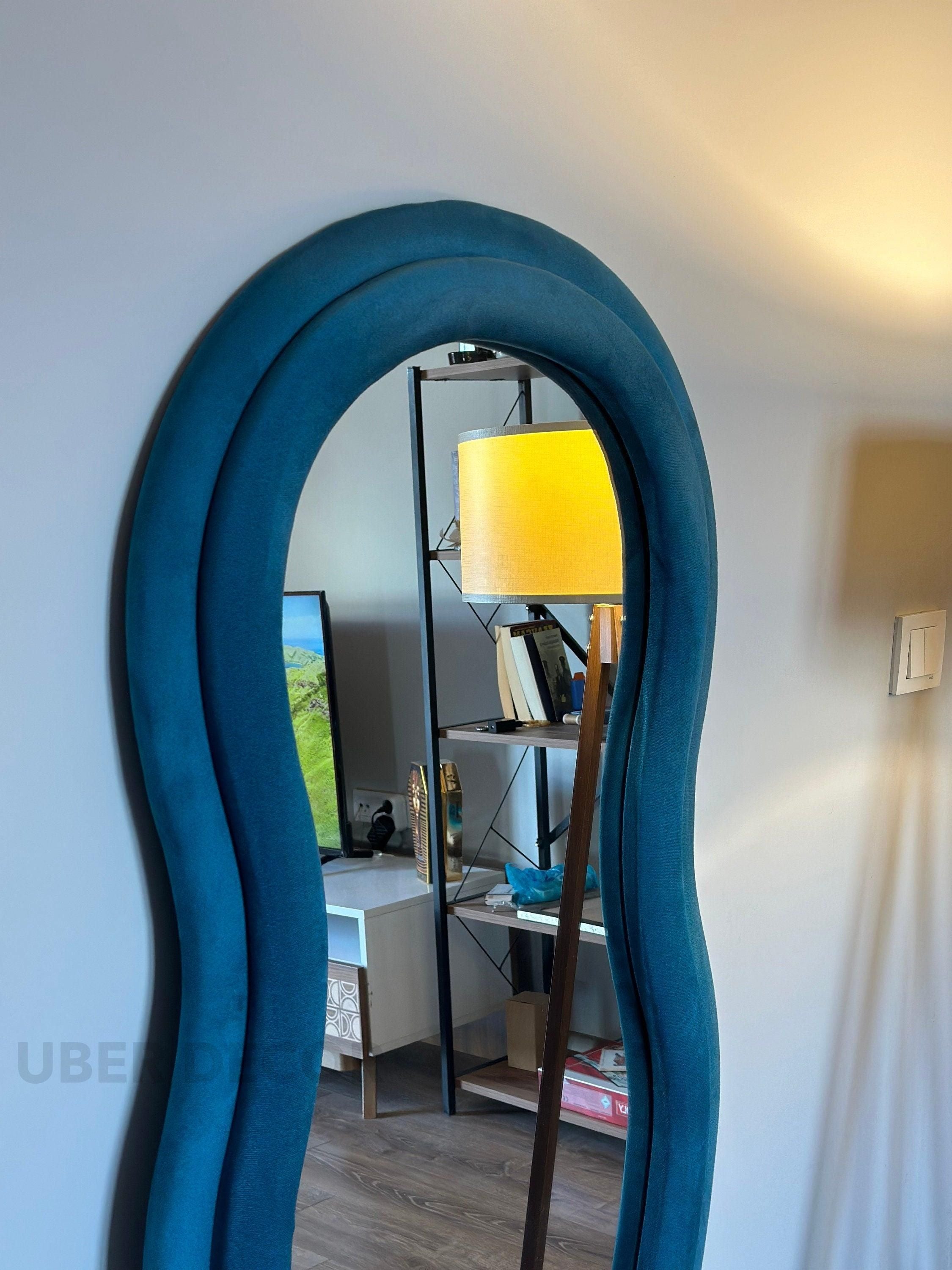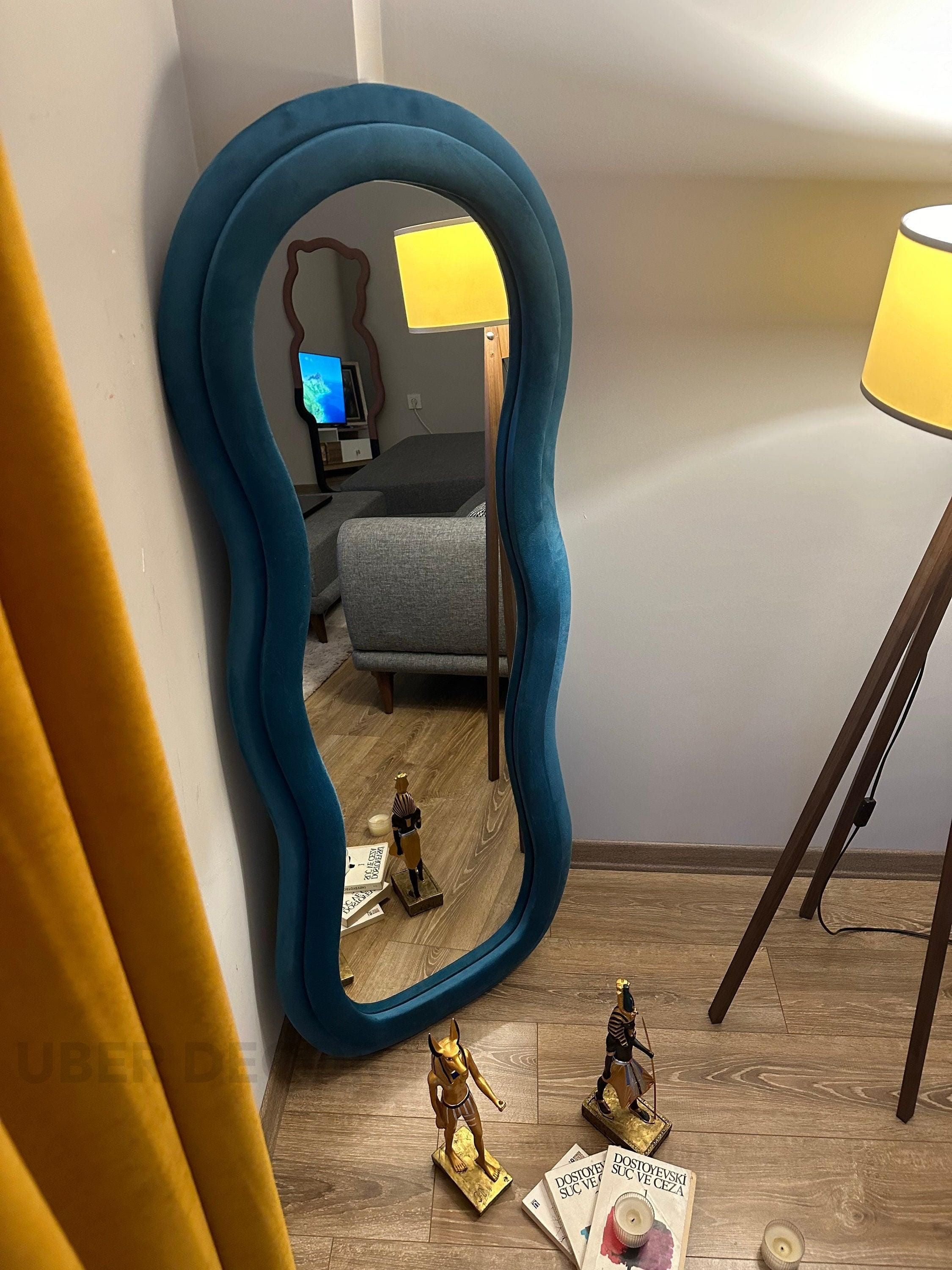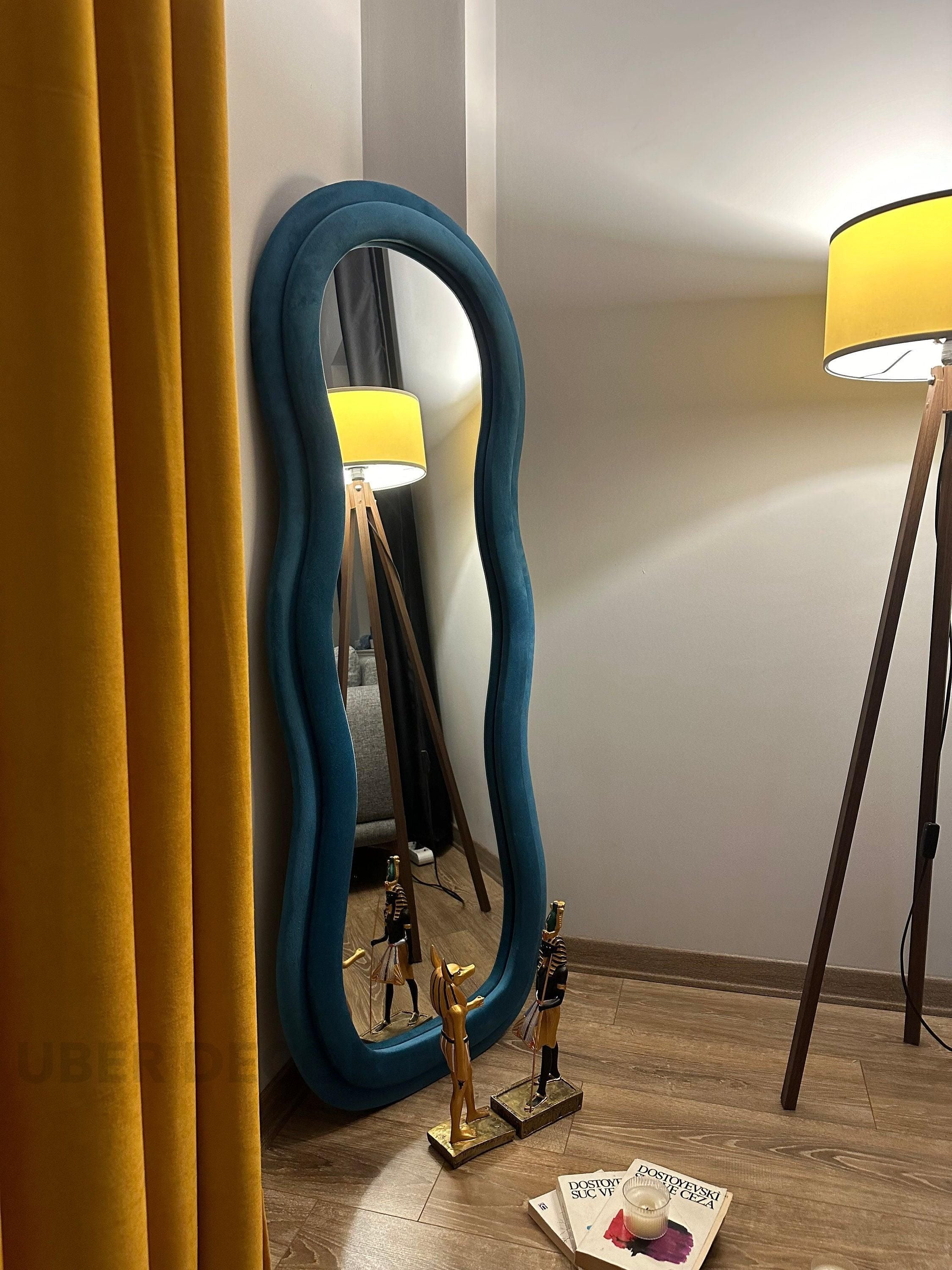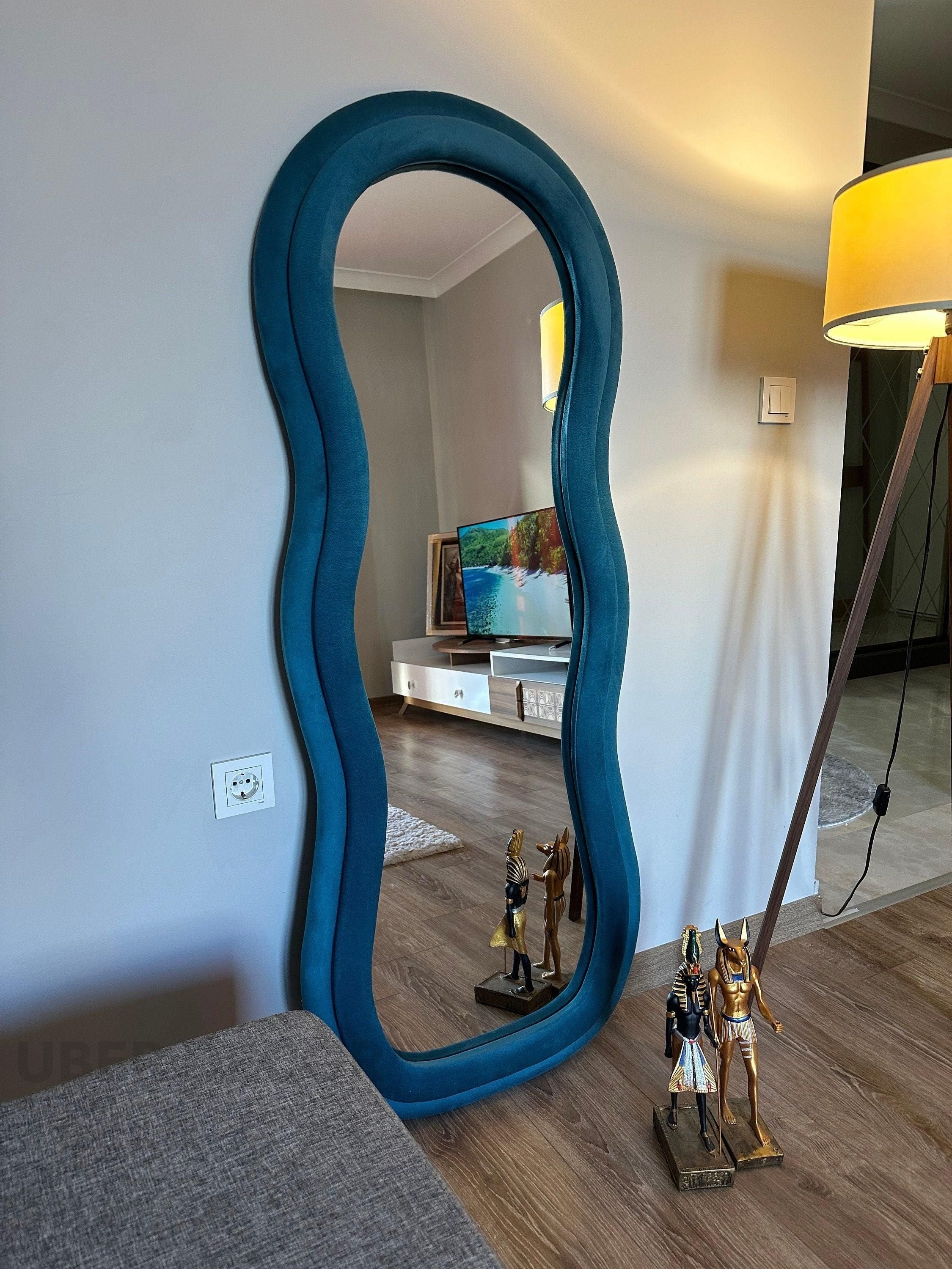 Velvet Wave Irregular Wall Mirror - Upholstered Suede Velvet Frame, Asymmetric Full-Length Body Mirror for Modern Home Decor
