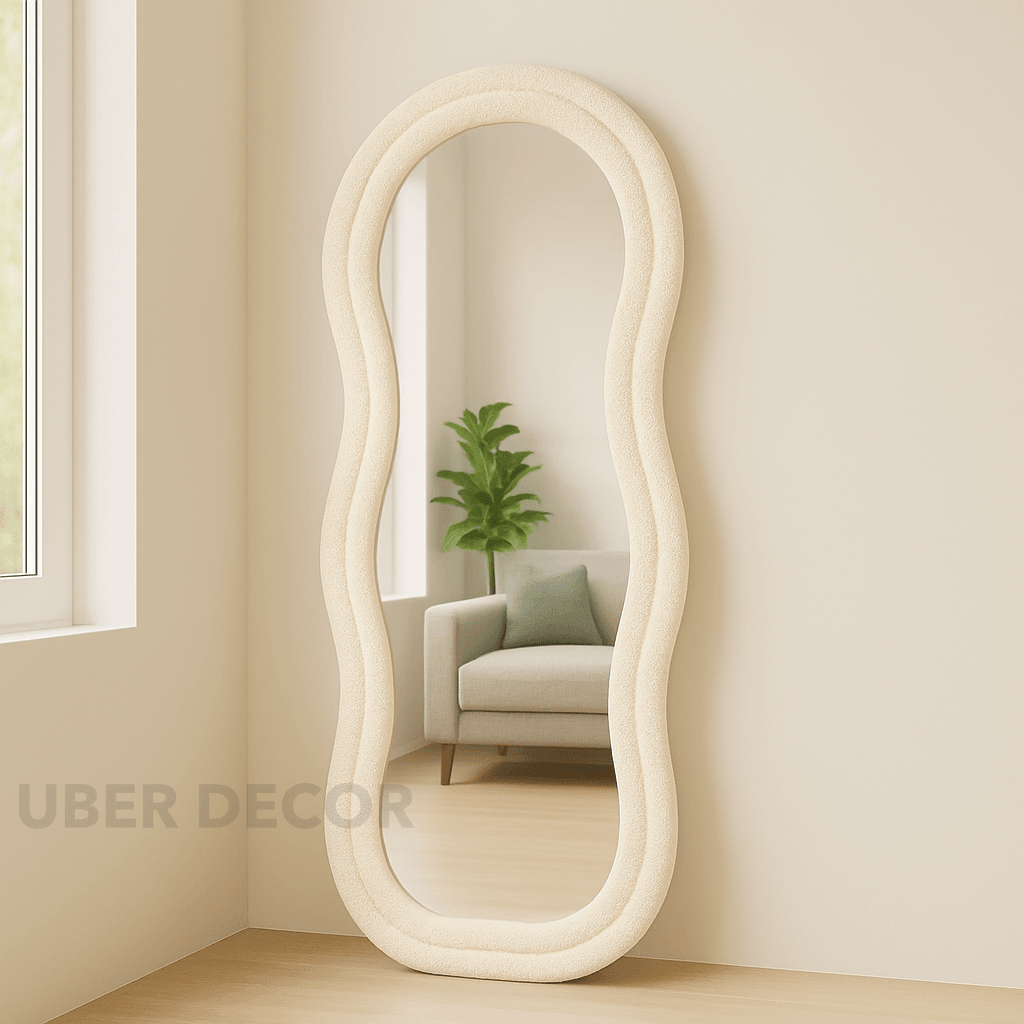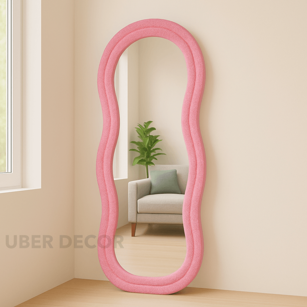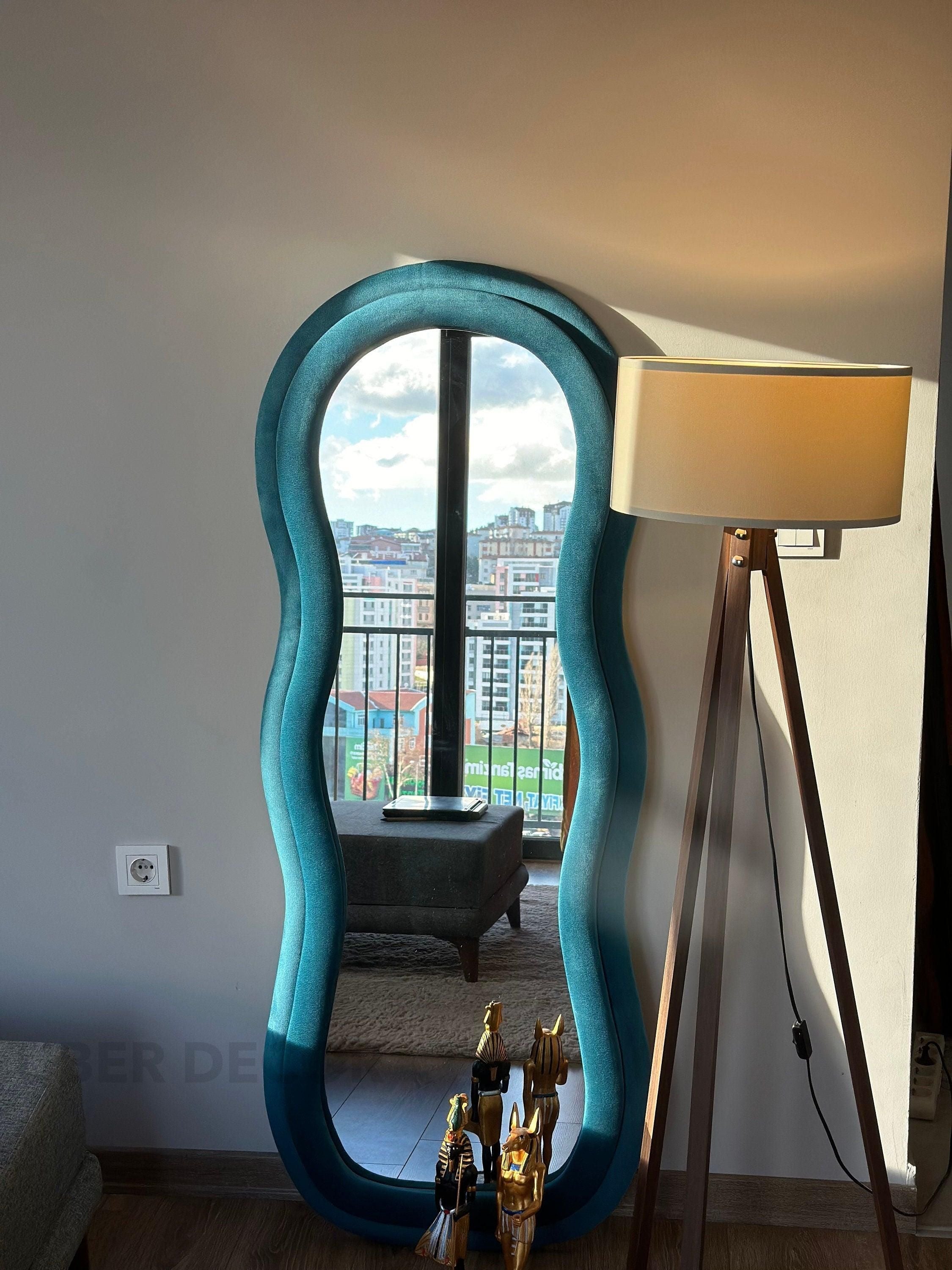 Velvet Wave Irregular Wall Mirror - Upholstered Suede Velvet Frame, Asymmetric Full-Length Body Mirror for Modern Home Decor