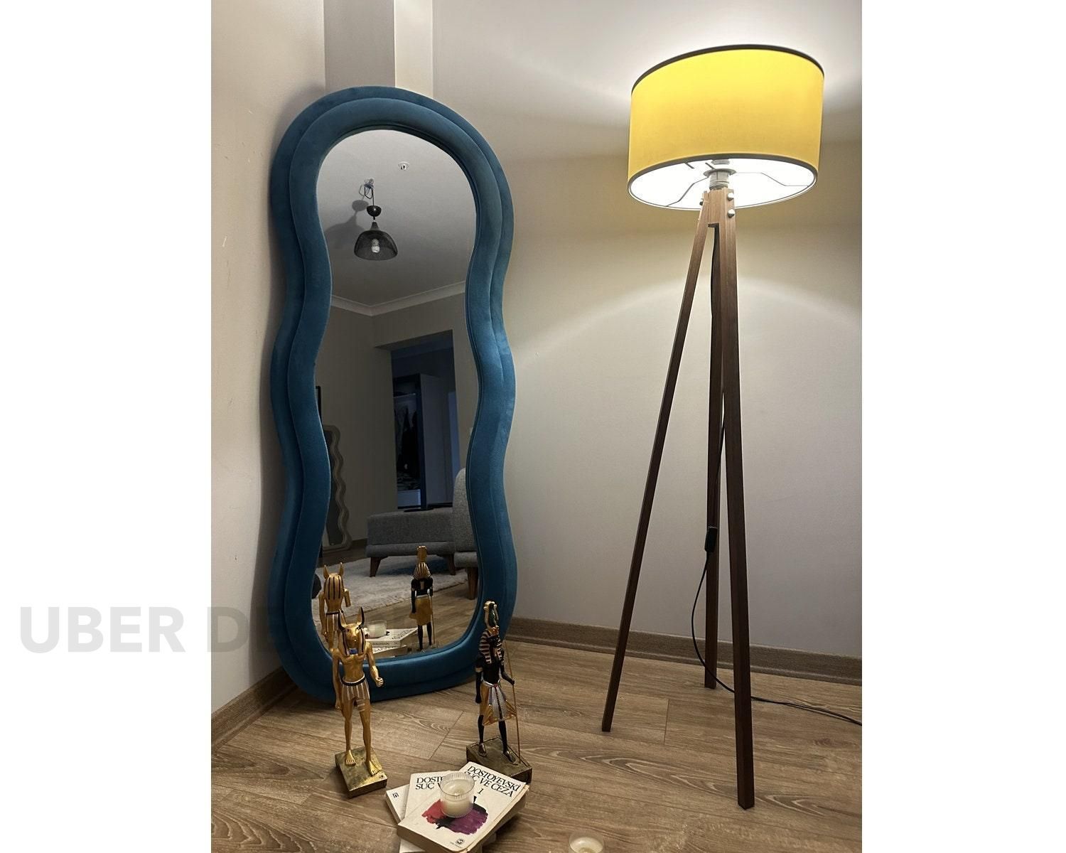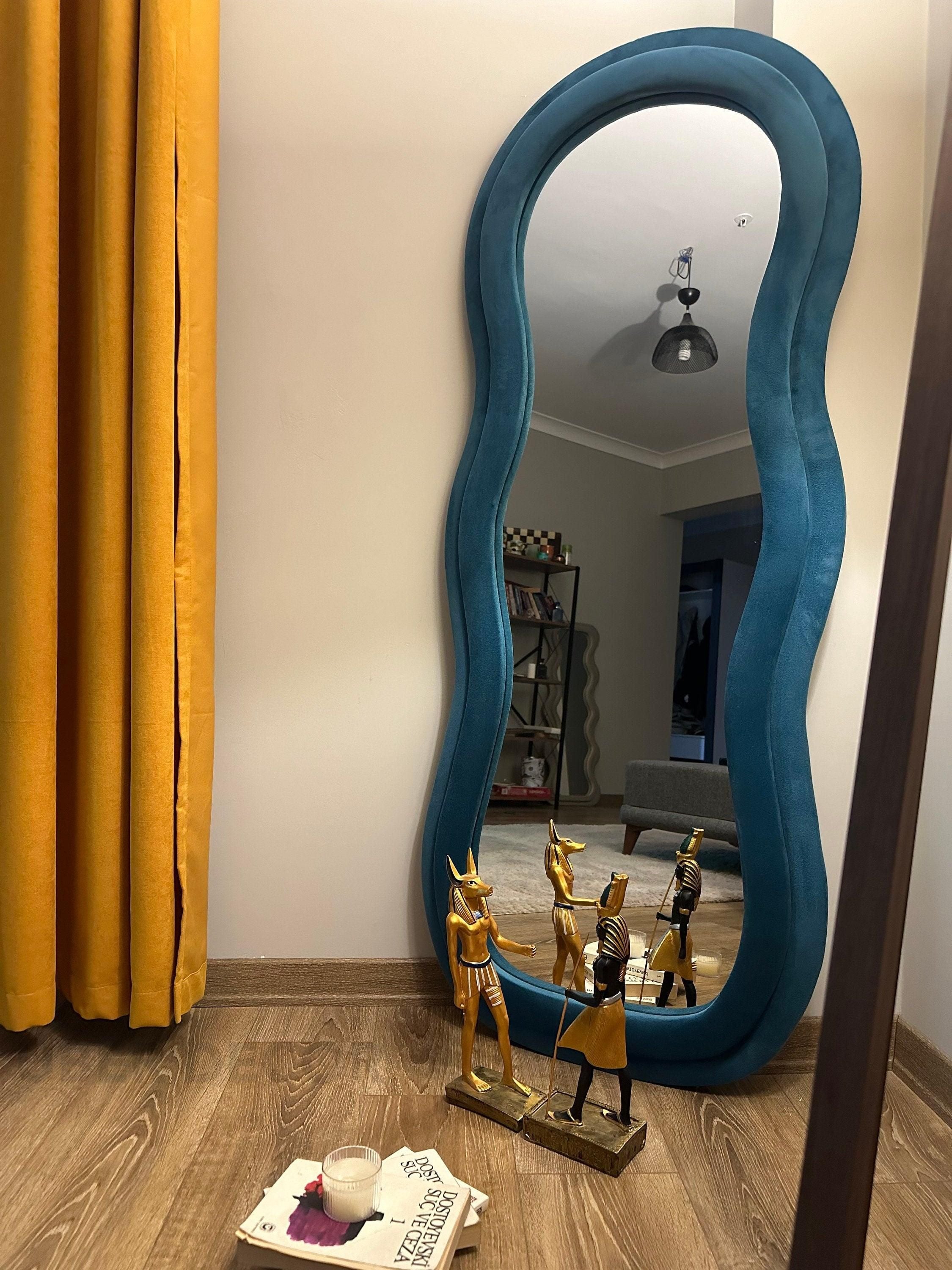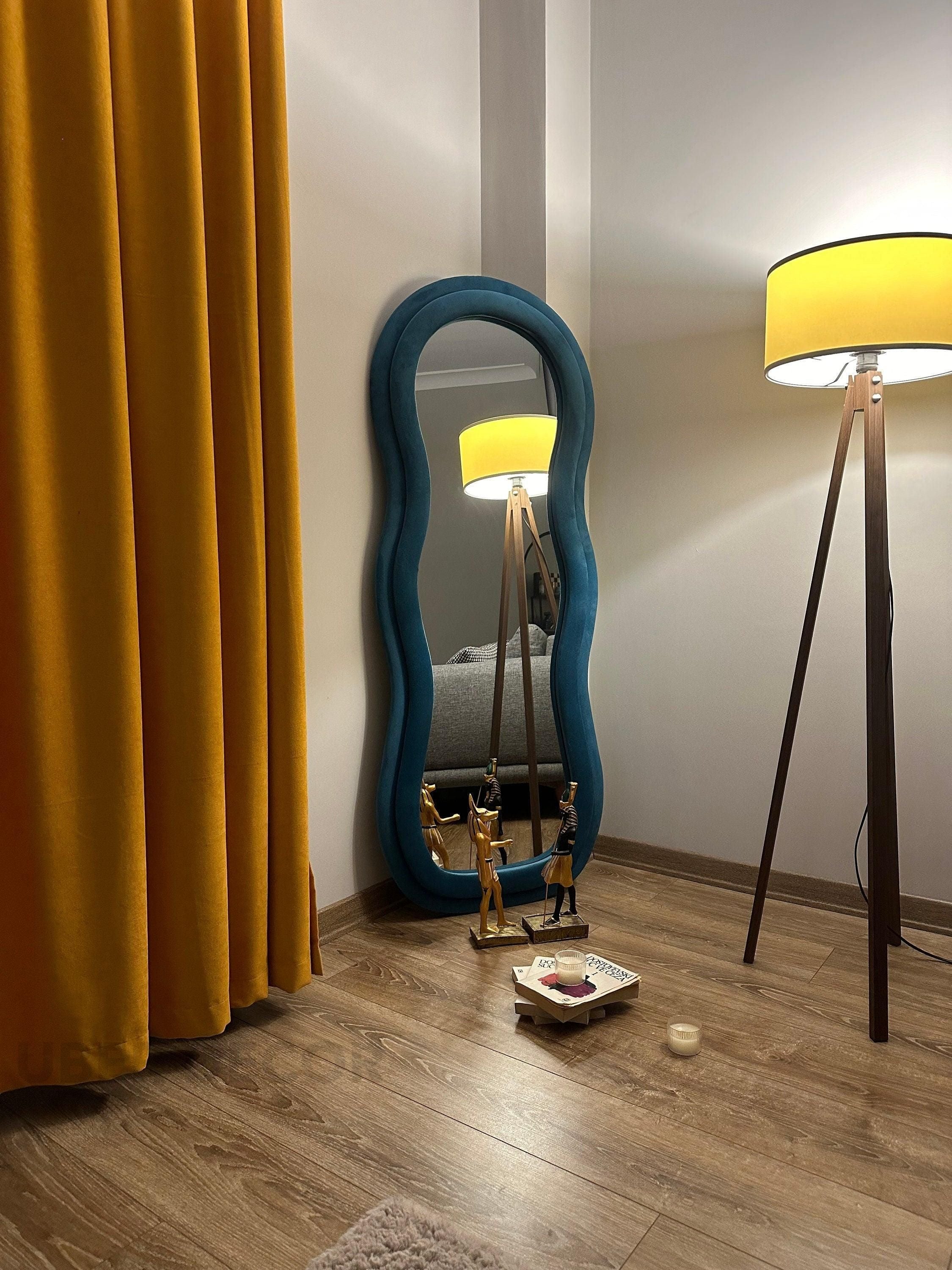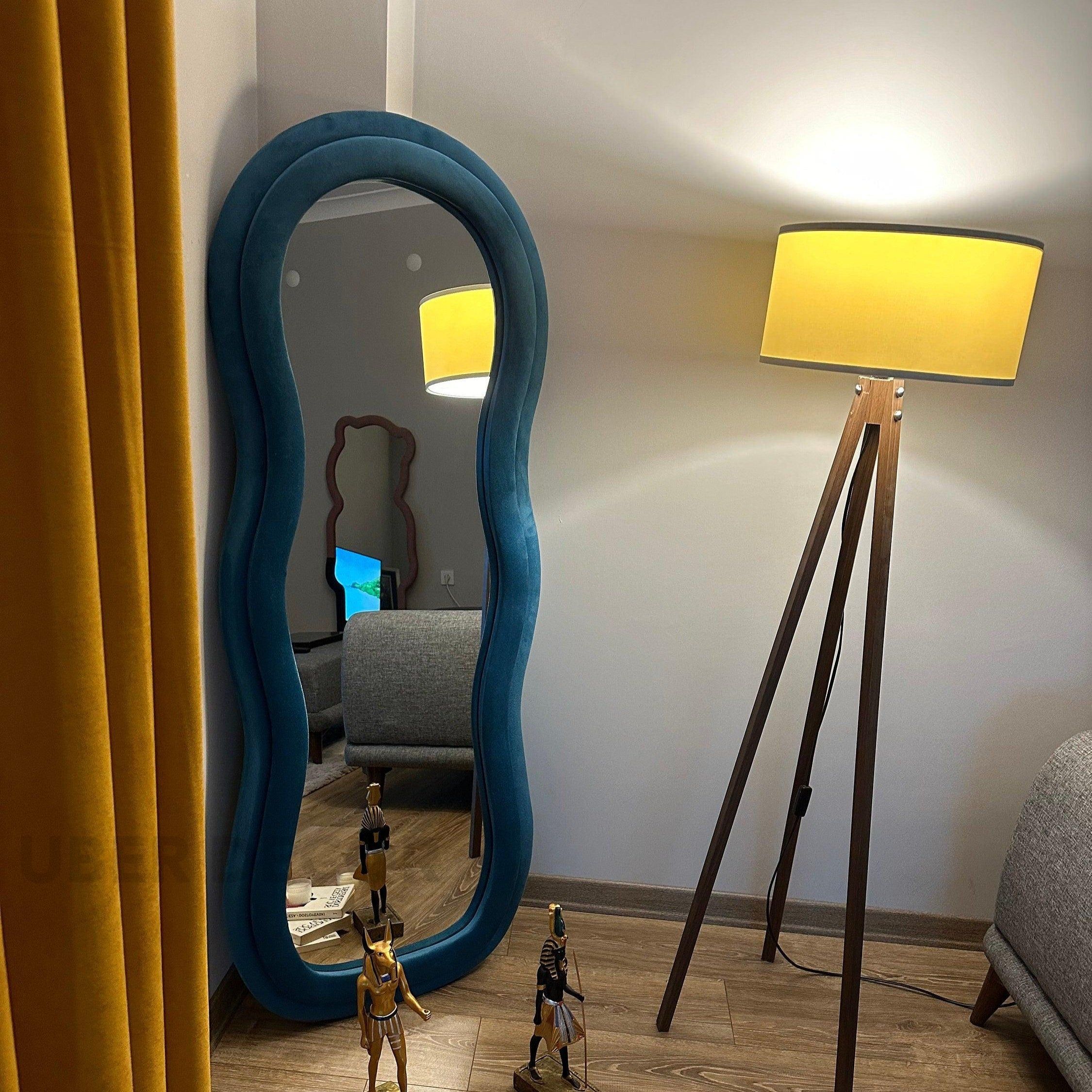 Velvet Wave Irregular Wall Mirror - Upholstered Suede Velvet Frame, Asymmetric Full-Length Body Mirror for Modern Home Decor