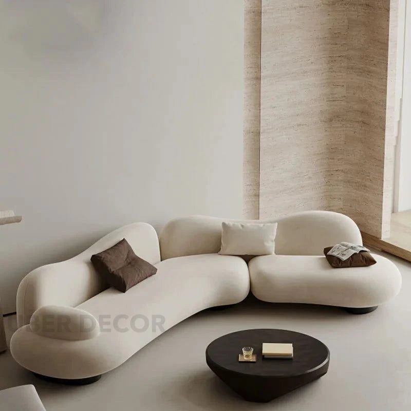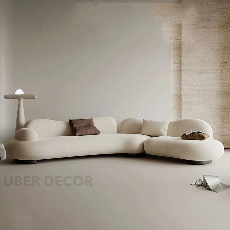 Villeta Nordic Lazy Living Room Sofa Set – Designer Double Sofas, Armchair & Puffs for Modern Lounge Décor