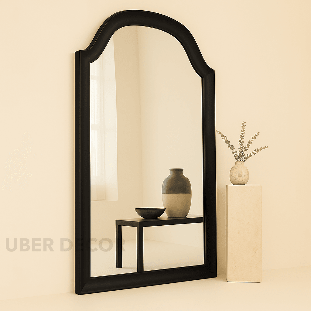 Violet Arched Black Wood Wall Mirror – Elegant Full-Length Mirror for Bedroom & Living Room