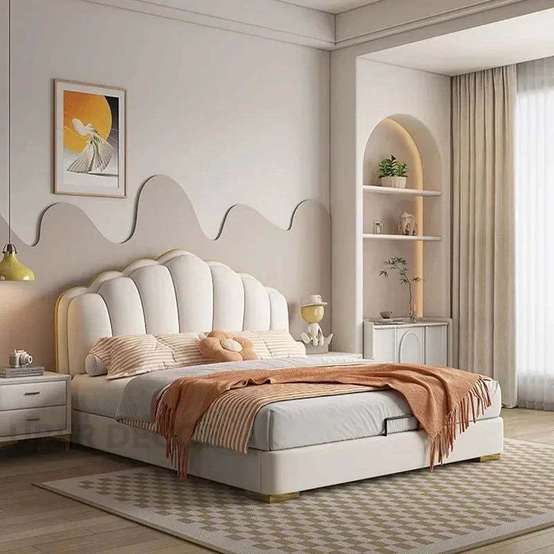 Waterproof Frame Double Bed Princess Beige Large Wooden Luxury Double Bed Headboards Storage Camas De Dormitorio Furniture