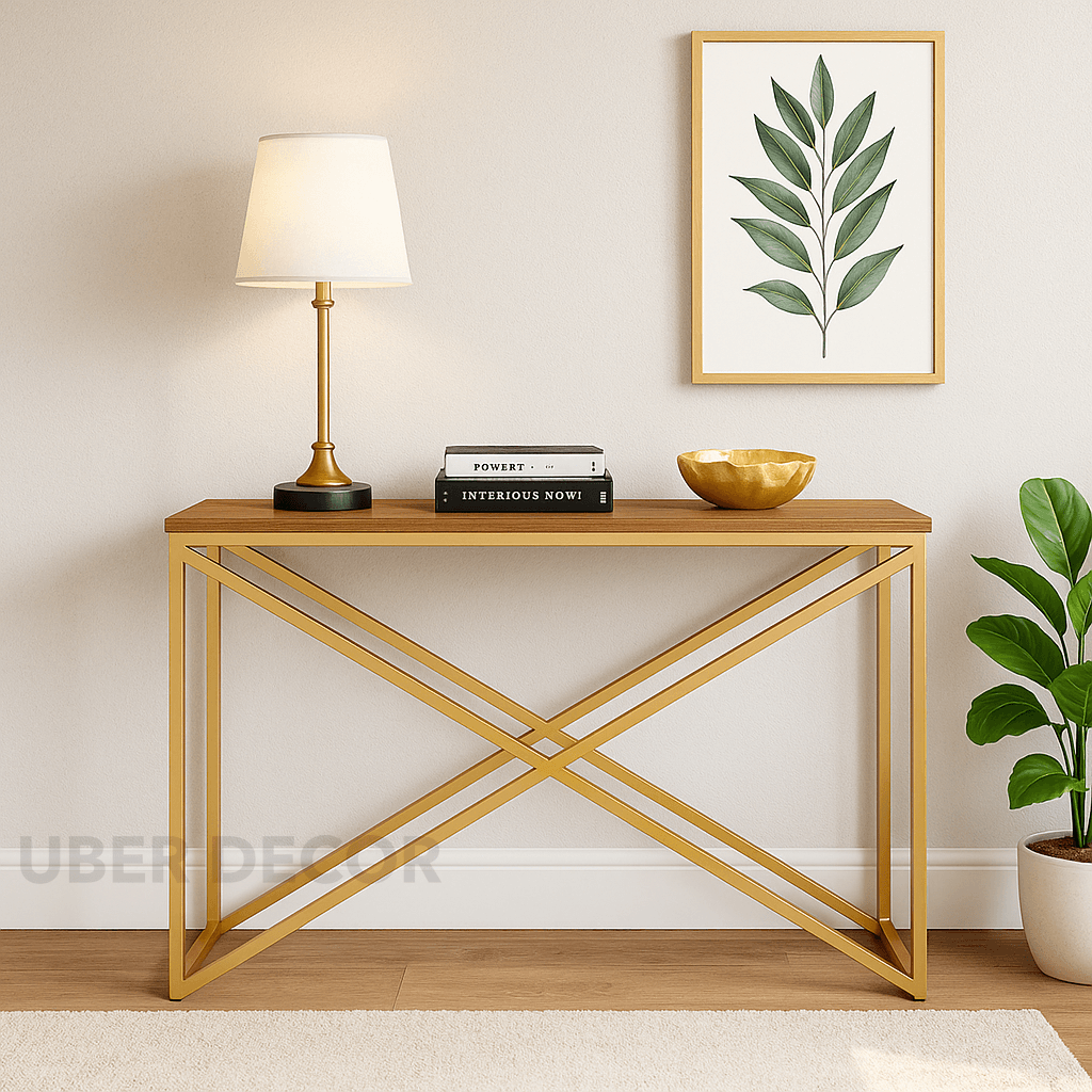 Xena Grid Console Table – Custom Wood or Marble Top Mid‑Century Modern Accent for Entryway & Hallway