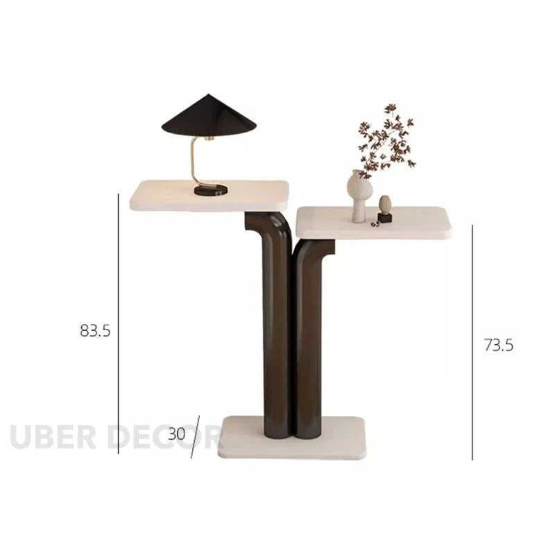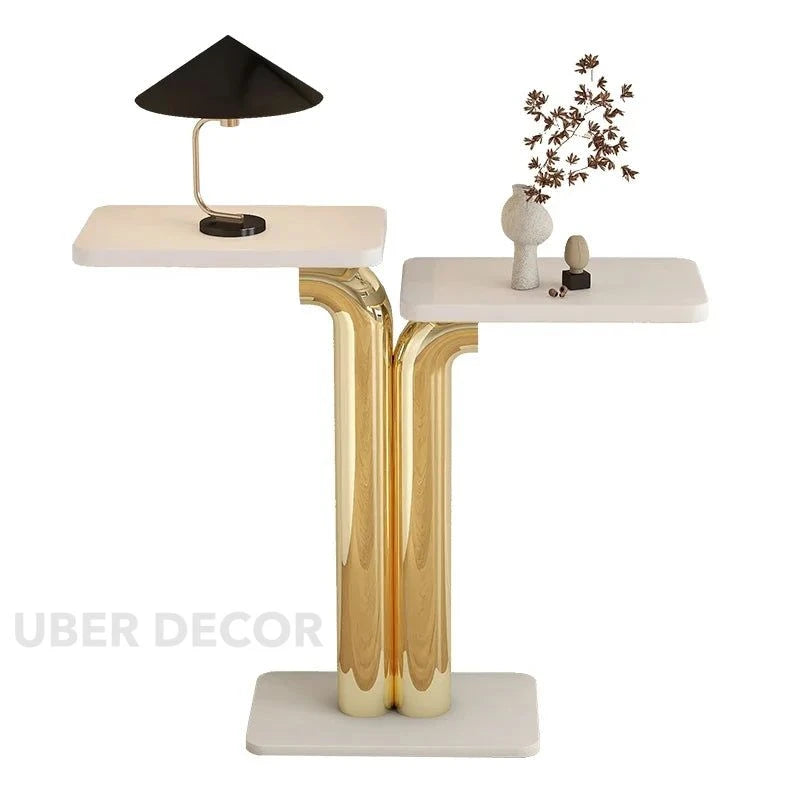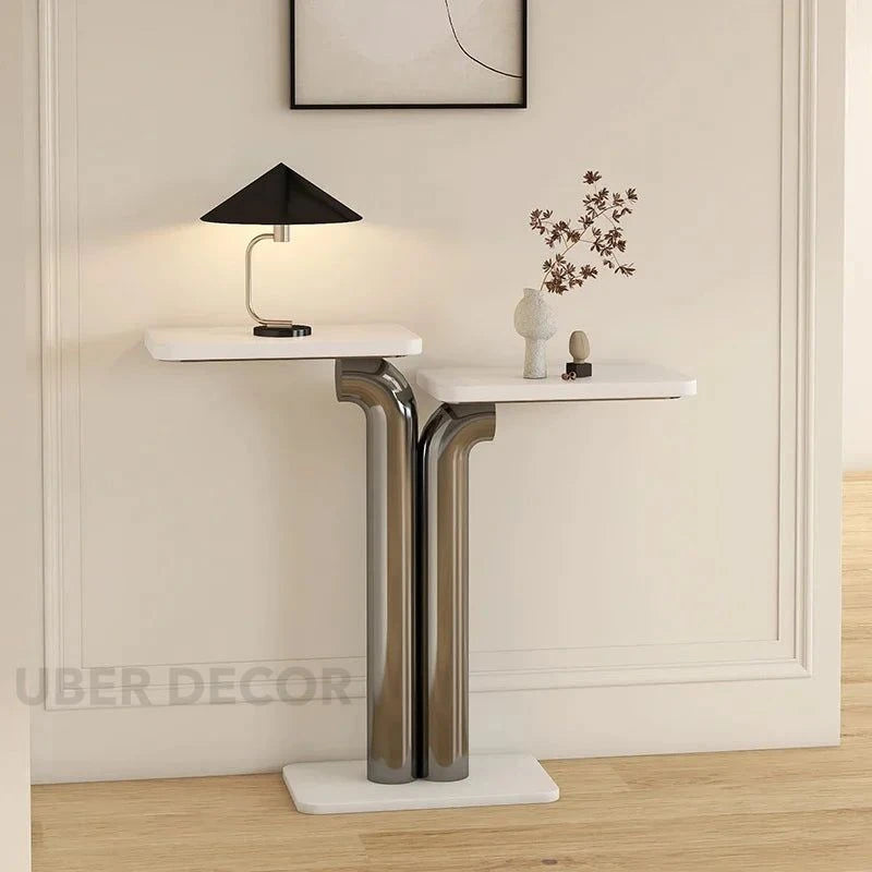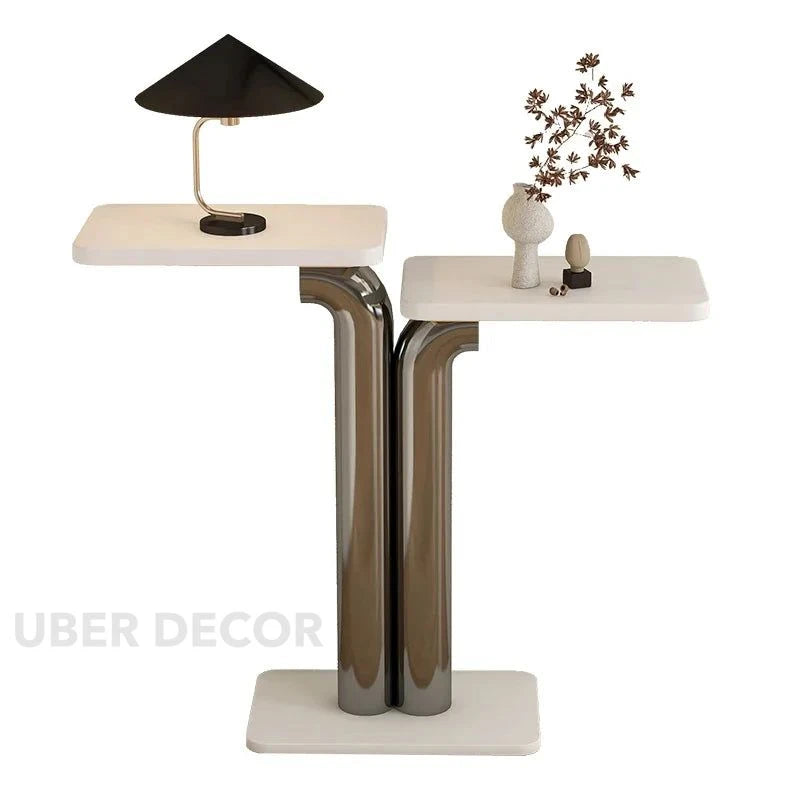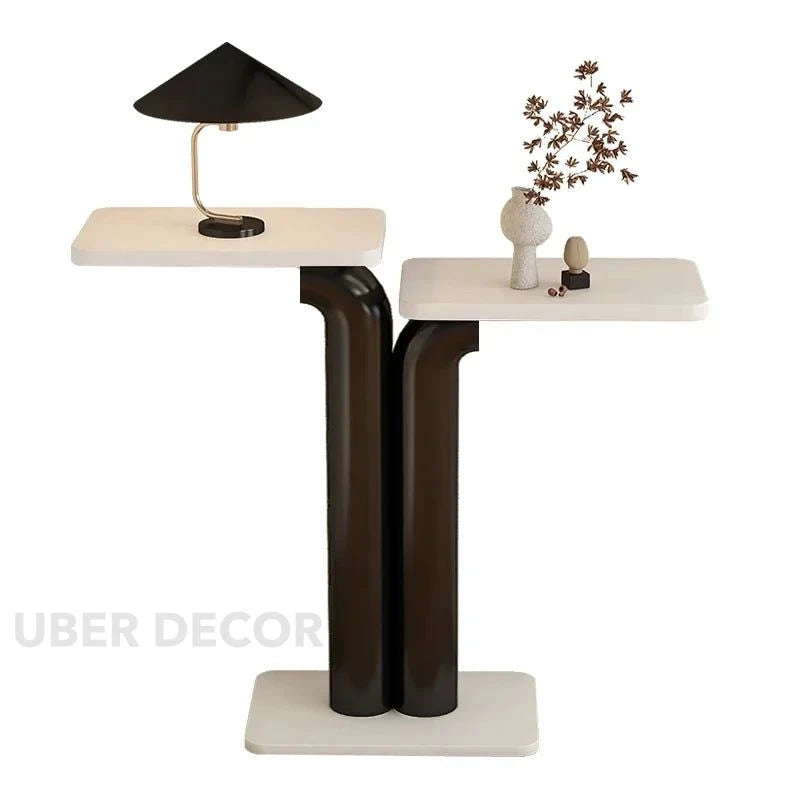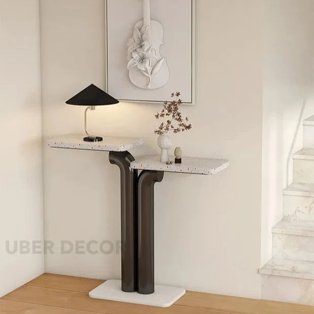 Yara Dual-Tier Console Table – Mid Century Modern European Console with Sculpted Metal Base for Hallway & Lounge
