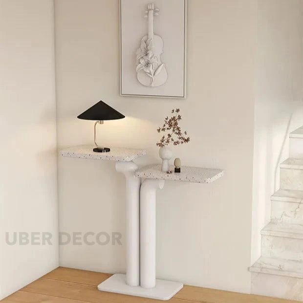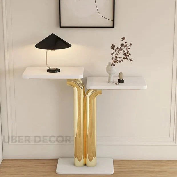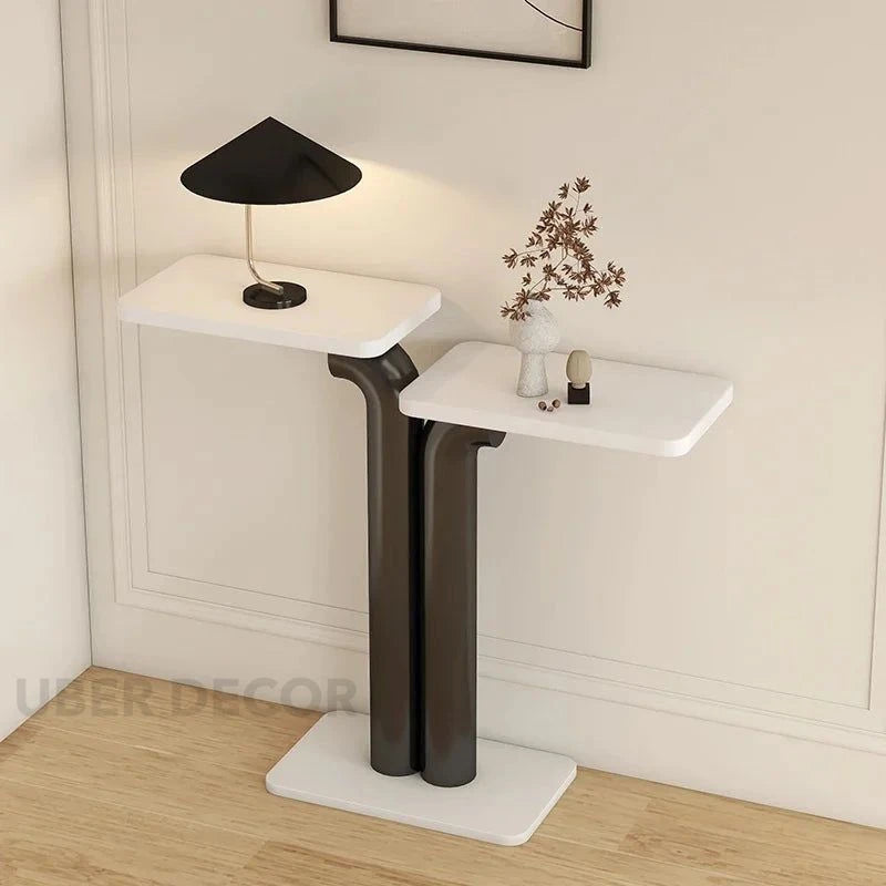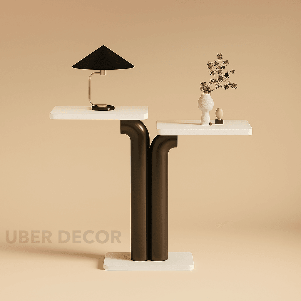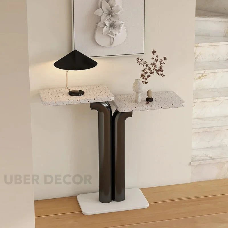 Yara Dual-Tier Console Table – Mid Century Modern European Console with Sculpted Metal Base for Hallway & Lounge