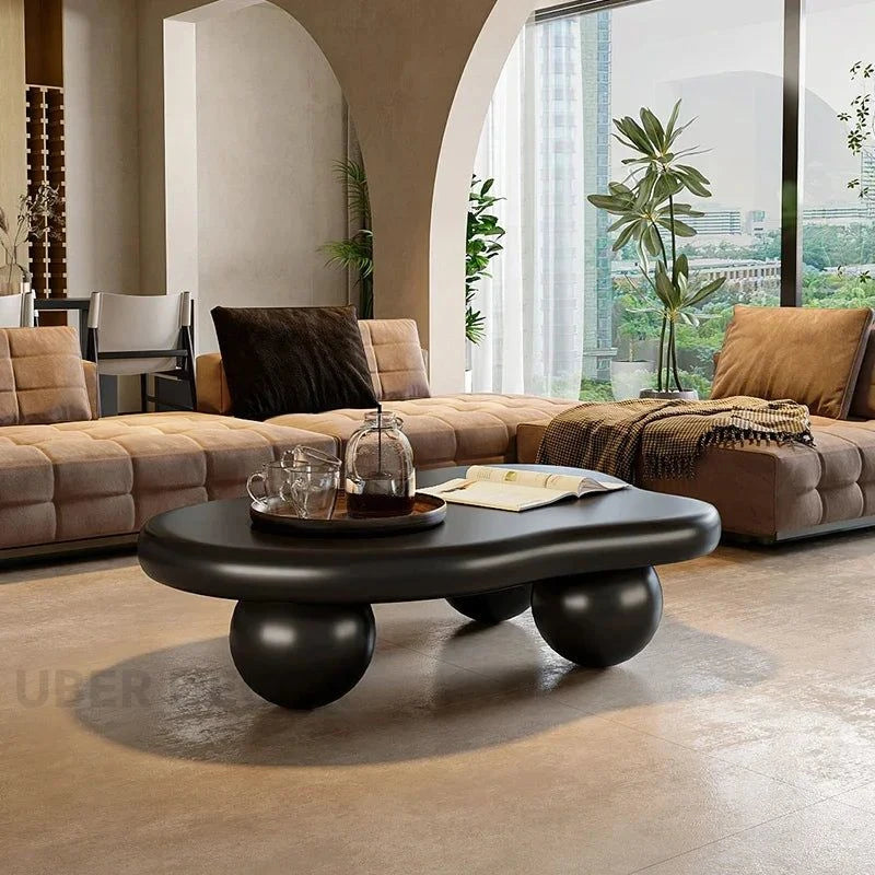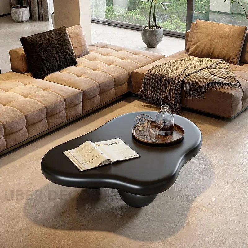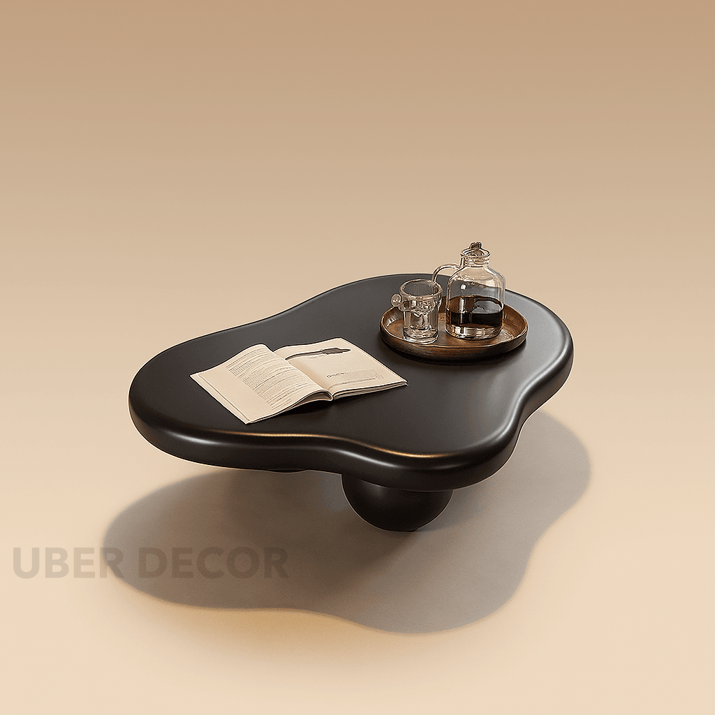 Yarra Noir French Cloud Coffee Table – Irregular Black MDF Top with Rounded Legs – Modern Minimalist Statement Piece for Living Room Interiors