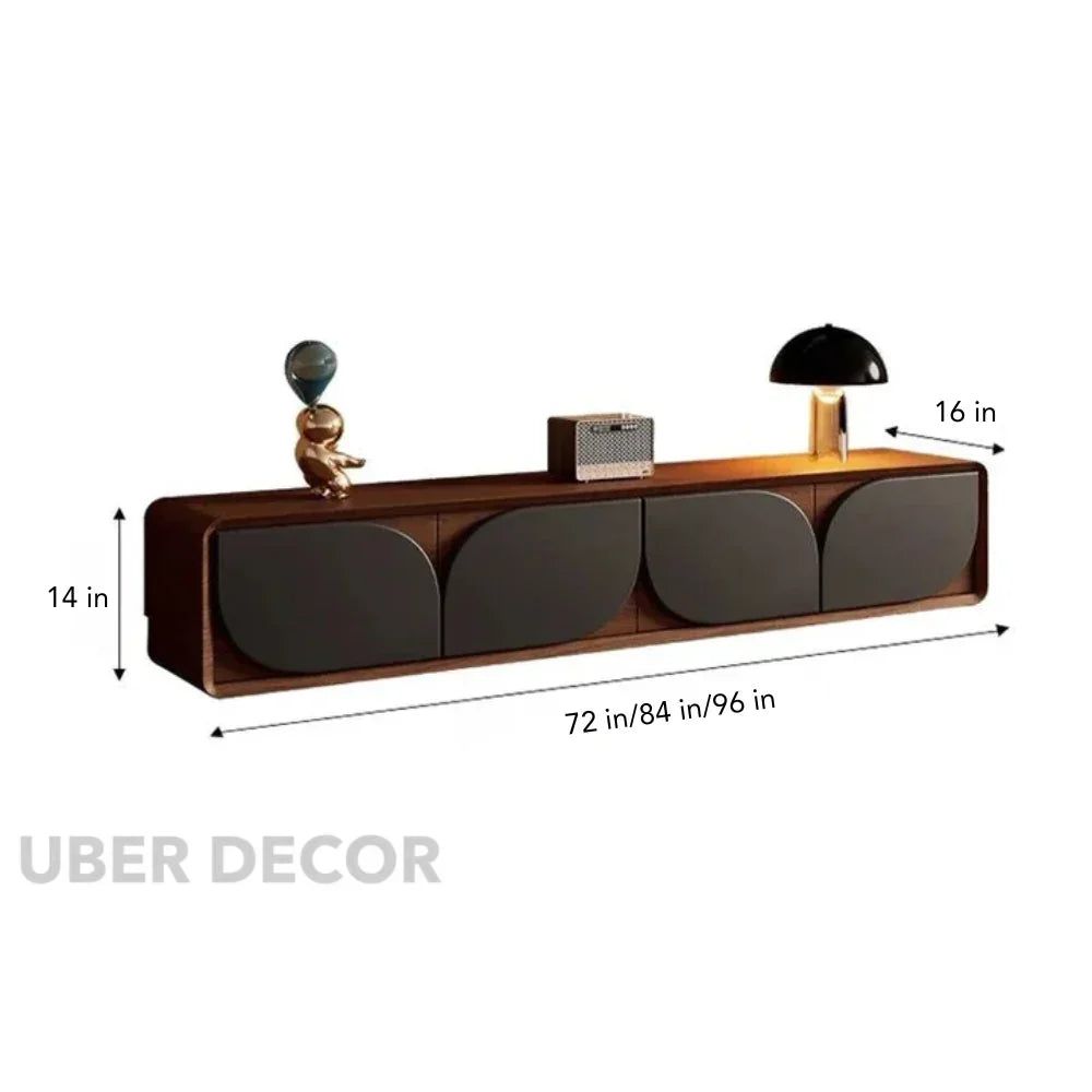 Zayrah Flow – Designer TV Cabinet, Mid Century Modern Console, American Inspired Walnut Finish, Closed Base, Living Room TV Unit Console