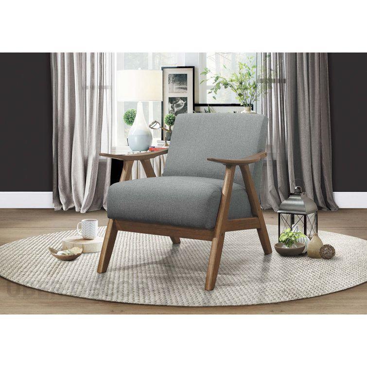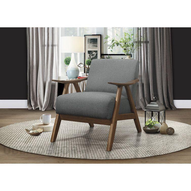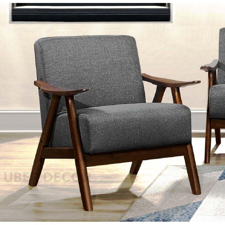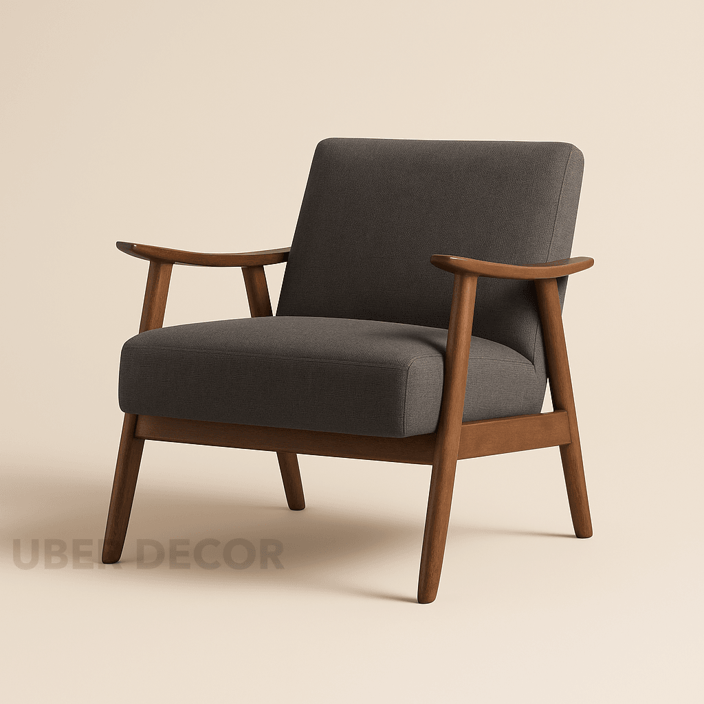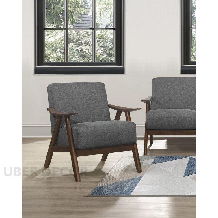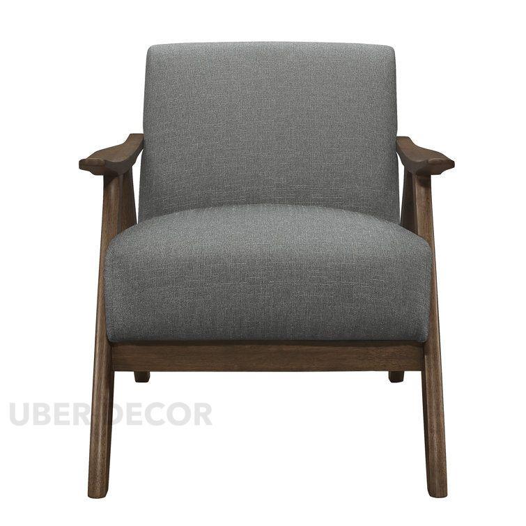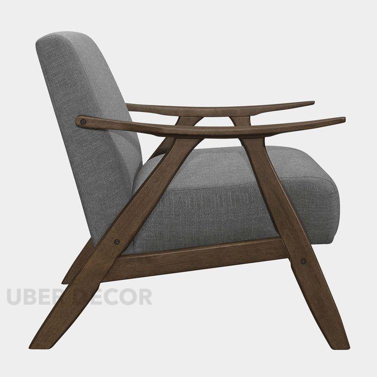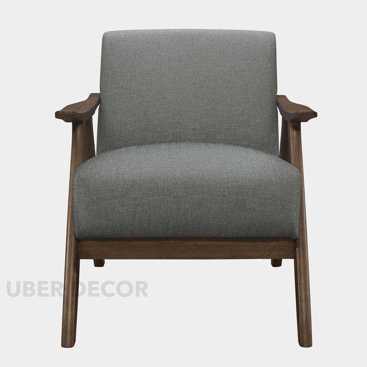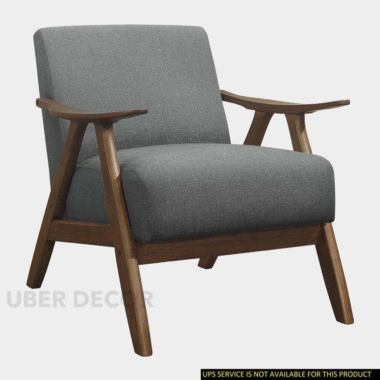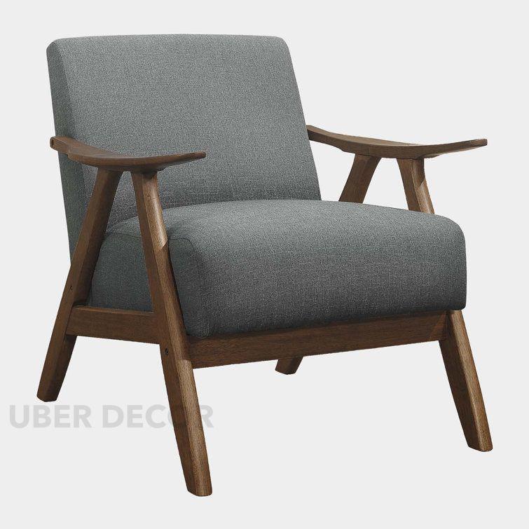 Zephra Accent Chair- Retro Vintage Upholstered Laid Back Armchair with Walnut Wood Arms and Legs