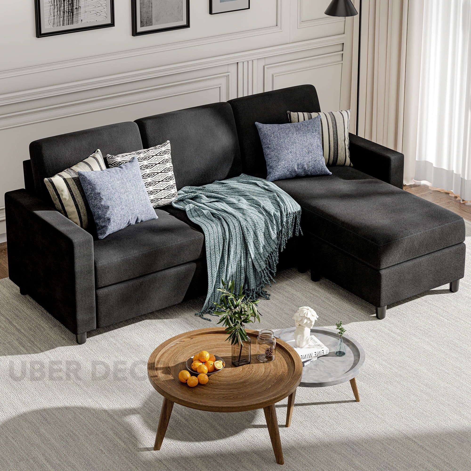 ZyraFlex Sofa Set with Chaise, Storage & Side Pockets – Customisable Modular Design